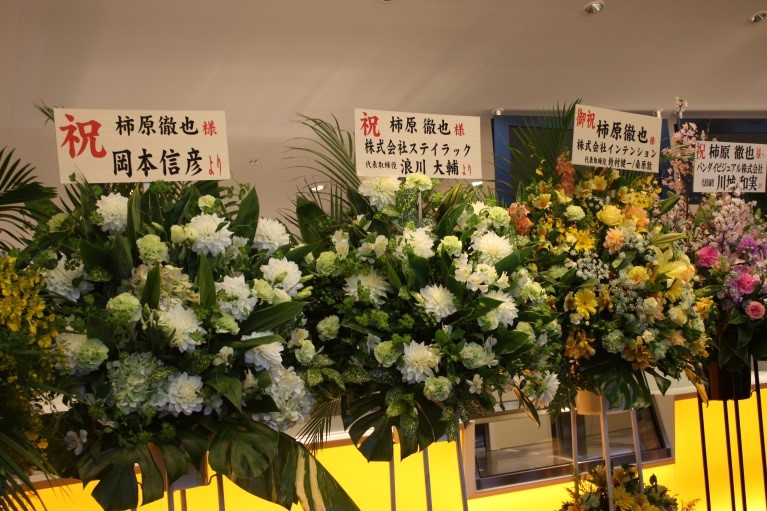 祝花コーナーは、スマホで撮影する列がずらり。