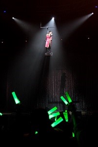 緑のサイリウムが広がるなか、ステージ上空から舞い降りてきた柿原さん。その姿は、天使のようでもあり、王子のようでもあり……みんなの視線を、一瞬で釘付けにします。
